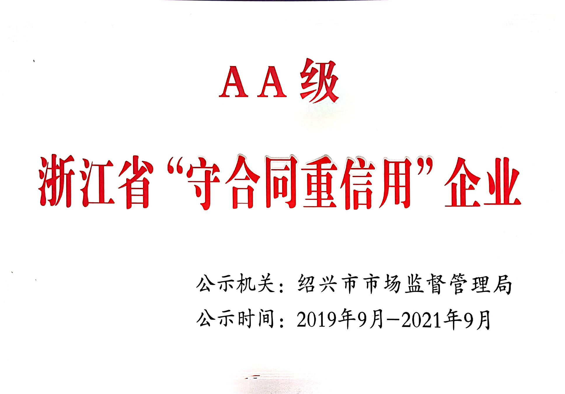 شرکت "تکلیف قرارداد و حفظ اعتبار" در سطح AA استان ژجیانگ